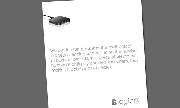 When a company is formed by a couple of young visionaries with big ideas, it always strikes us as a shame to see them produce sterile, lifeless marketing materials. We were thrilled when the guys at Saleae were willing to have some fun with the design of their brochure. They were, after all, trying to appeal to people who were a lot like them, so this was a perfect opportunity for them to express their personalities.