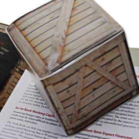 This one, pictured above, was for HCSB Trade Bank. They wanted a desk display for customers to pick up and look at, which would often prompt the customer to ask about it, providing an opening for the rep to give the customer a brochure explaining some of their products. This was a very easy and inexpensive way to promote new products. Construction on the desk display was very minimal, and pushing the desk display's sides together pops it into its final 3D shape.