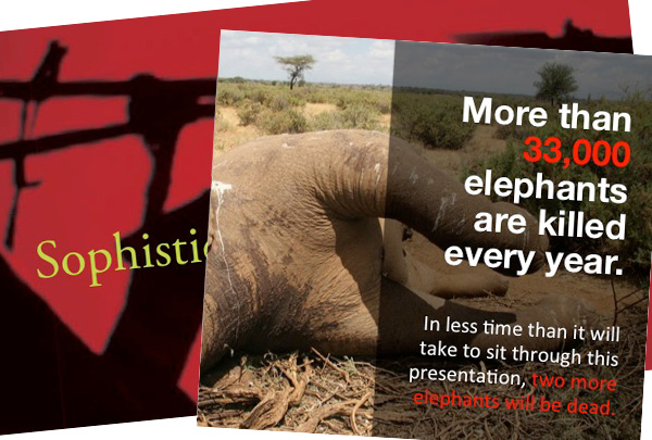 This presentation, designed for small audiences of high-net-worth individuals, needed to communicate the global crisis of elephant poaching and ivory trafficking. It needed to show just how brutal these crimes are without being over-designed.